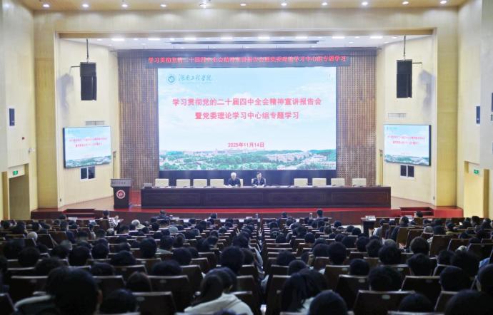 11月14日上午,我校在一报告厅举行“卓越大讲堂”之学习贯彻党的二十届四中全会精神宣讲报告会暨党委理论学习中心组2025年第十一次学习。党委书记黄昕主持学习。党委副书记、校长易兵等校领导,党委理论学习中心组成员、中层干部(含挂职中层副职)、辅导员、马克思主义学院教师及学生代表参加学习。