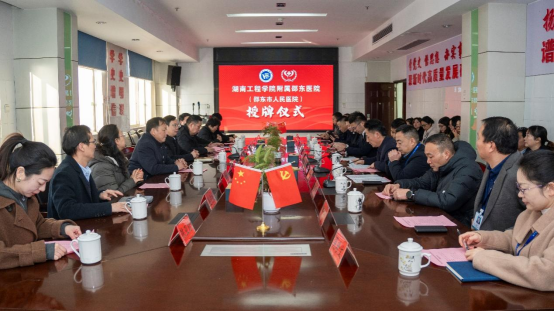 1月8日上午,我校与邵东市人民医院合作共建非直属附属医院揭牌仪式在邵东市人民医院举行。邵东市人民政府副市长曾会林,市卫生健康局党组书记、局长黄祥田,市人民医院全体院领导及相关科室负责人;我校党委书记黄昕,党委委员、纪委书记齐路良,党委委员、副校长魏克湘,党委委员、组织部部长曾永卫以及学校相关职能部门、医学工程技术学院负责人等参加仪式。仪式由黄祥田主持。
