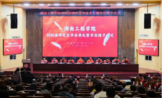 1月14日上午,我校在一报告厅举行2026届硕士研究生毕业典礼暨学位授予仪式。全体校领导,校学位评定委员会成员、硕士专业学位评定分委员会成员、研究生院(研究生工作部)、培养学院院长及分管研究生教育的院领导、学位点负责人、学位点秘书、研究生导师、毕业研究生及其亲朋好友、在读研究生参加典礼。大会由副校长陈燕东主持。