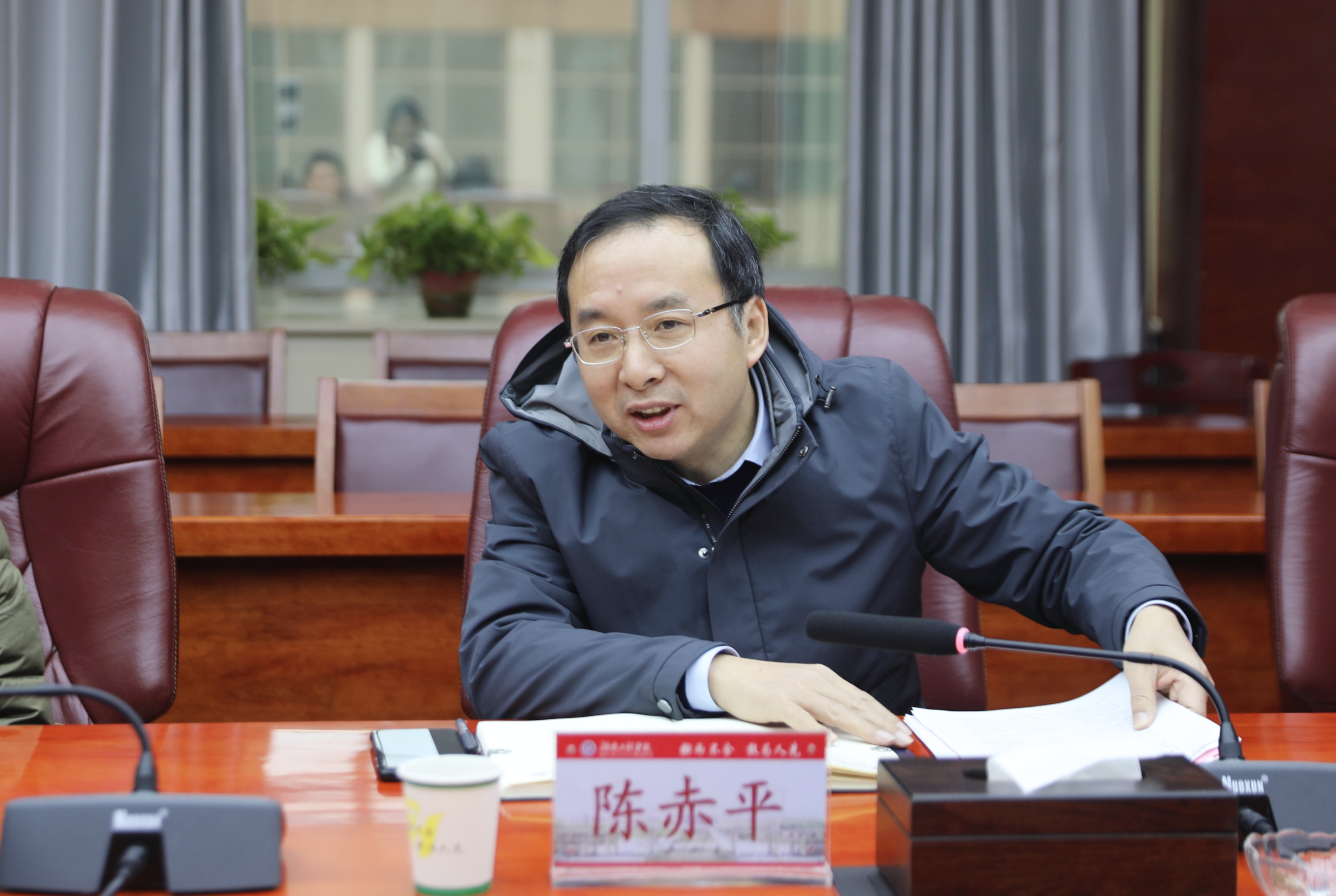 1月26日上午,长沙学院校长陈赤平一行来我校调研交流。我校在二会议室举行座谈会,党委书记曹执令、党委委员、副校长魏克湘,教务处、计划财务处、商学院相关负责人参加交流。会议由魏克湘主持。