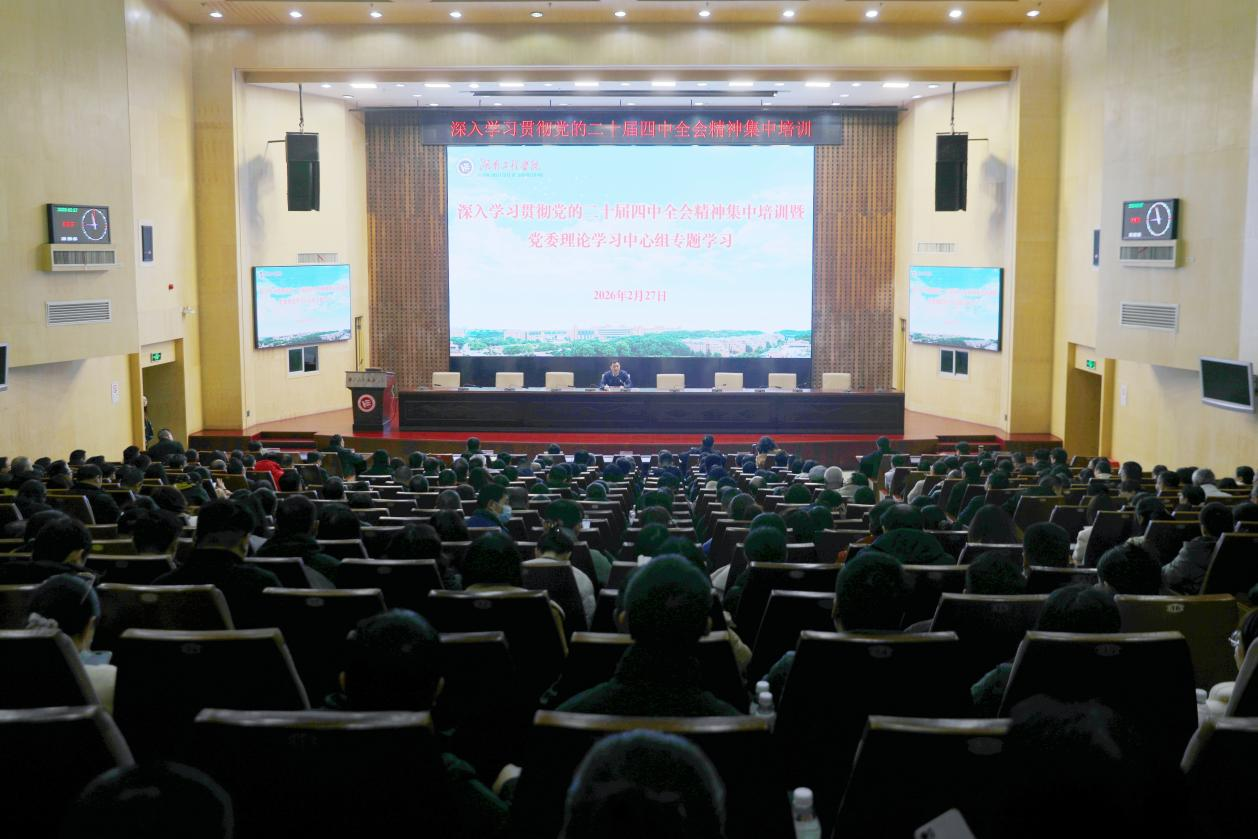 2月27日,我校深入学习贯彻党的二十届四中全会精神集中培训第二场、第三场在一报告厅开讲,这同时也是党委理论学习中心组专题学习。全体在校校领导、中层干部、科级干部、专干、教研室(实验中心)主任及党支部书记参加学习。