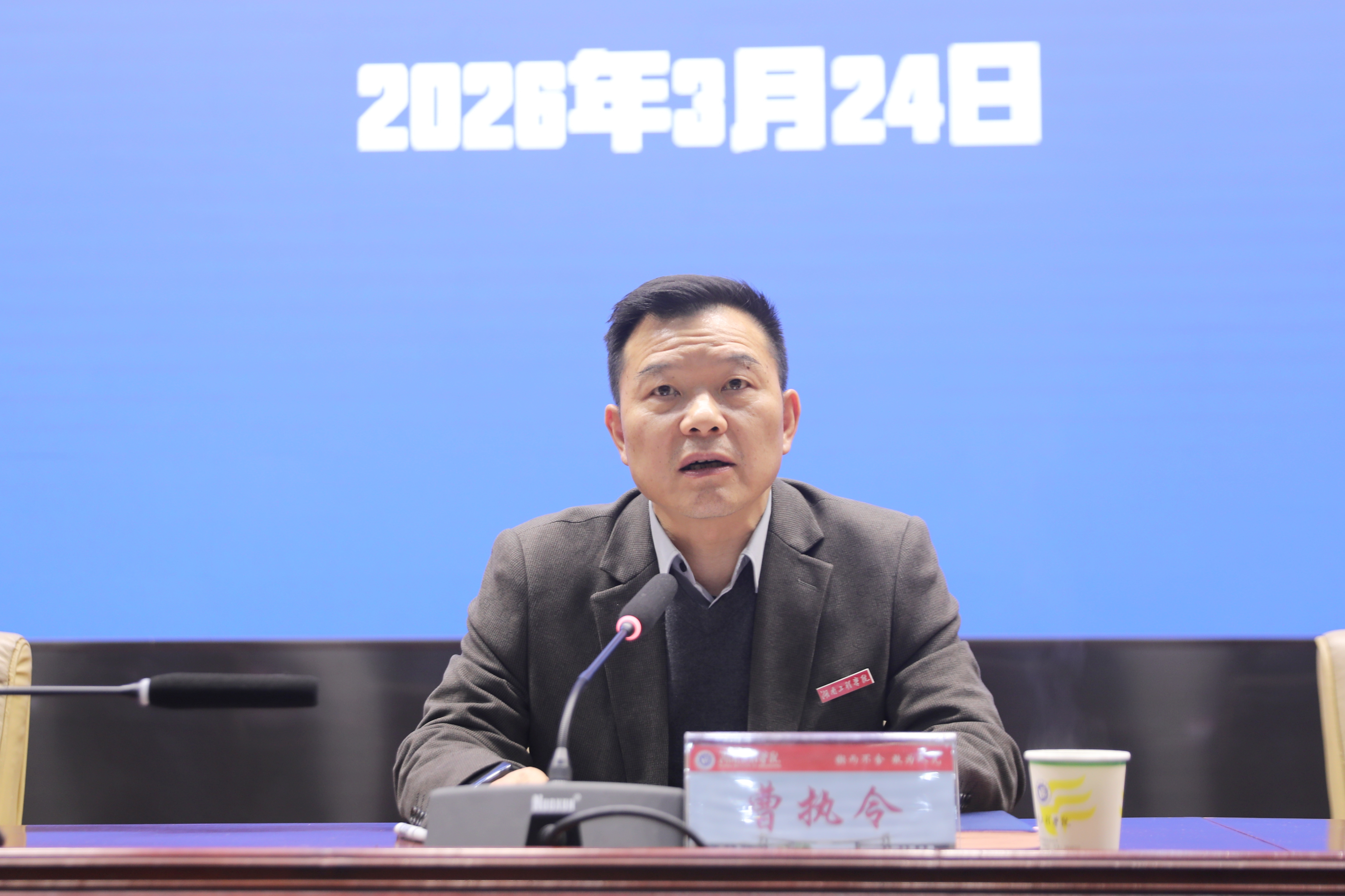 3月24日,我校召开2026年全面从严治党工作会议,总结2025年学校推进全面从严治党工作成效,部署2026年重点任务。党委书记曹执令讲话,纪委书记、监察专员齐路良作纪检监察工作报告,在校校领导参加,党委副书记向前主持会议。