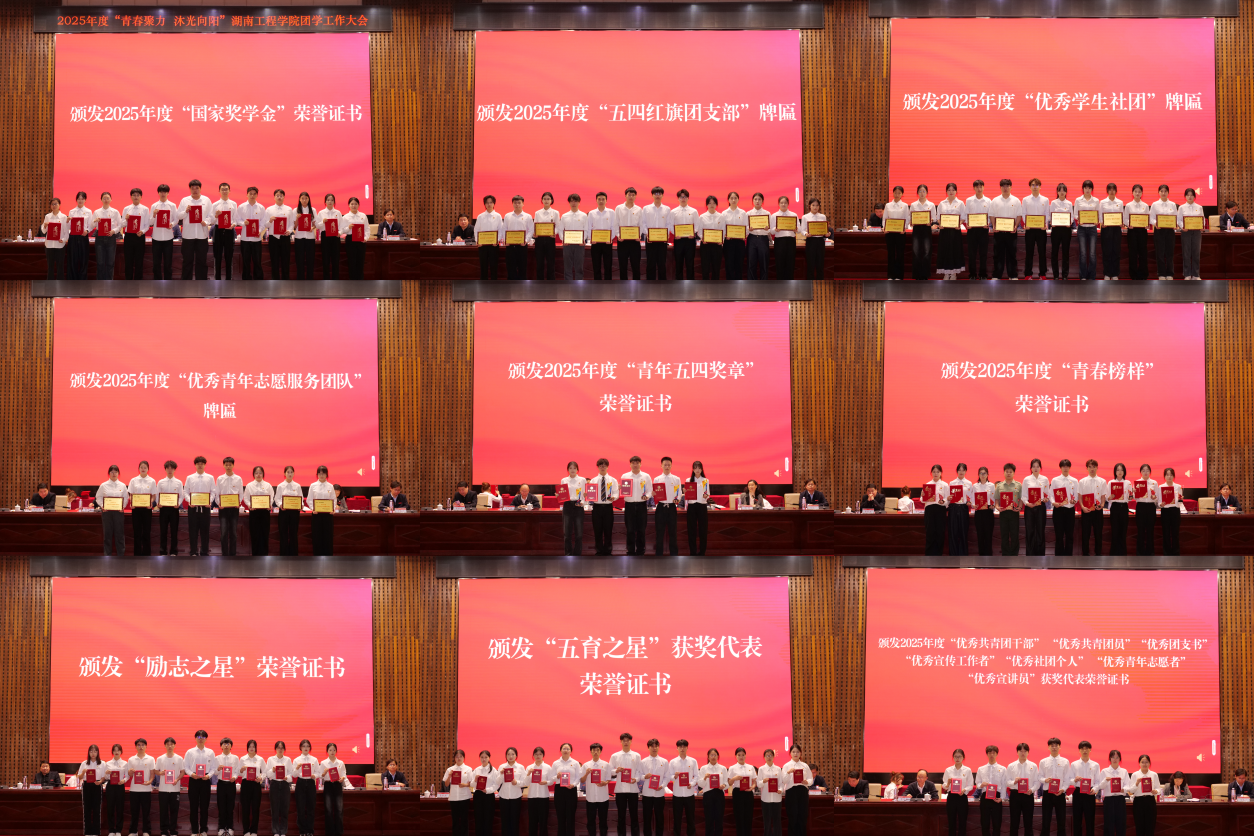 会议对2025年度国家级、省级、校级团学工作中表现突出的先进集体和优秀个人进行了表彰,涵盖辅导员工作研究与实践、易班建设、暑期社会实践、辅导员年度人物、青年五四奖章、青春榜样、五育之星、优秀共青团干部及无偿献血先进个人等多项荣誉,传递奋进之声,彰显榜样力量。