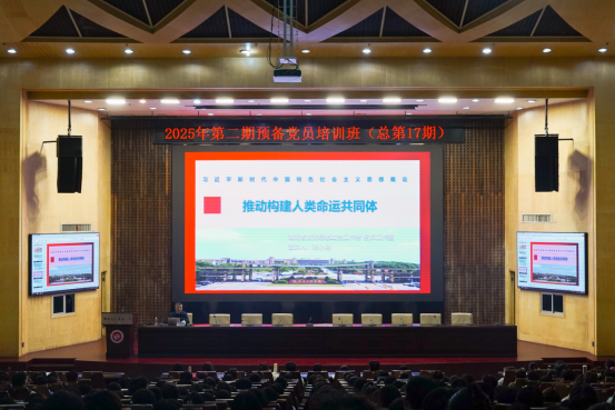 为深入学习贯彻习近平新时代中国特色社会主义思想和党的二十届四中全会精神,推动《全国党员教育培训工作规划(2024-2028年)》落地落实,12月2日下午,我校在一报告厅举办预备党员集中培训班,党委委员、副校长张小刚讲授题为《推动构建人类命运共同体》的专题党课。
