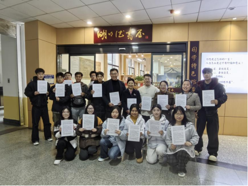 活动第二阶段为主题分享,陈仪结合创业经历,讲述国学文化与阅读如何为其事业发展注入智慧与动力;苟忠伟则围绕成长这一主题展开分享,通过分享自己在大学和工作之间学习的经历,阐述突破边界对个人成长的重要意义。在互动环节,师生踊跃提问,与嘉宾展开热烈交流,并在会后加入明德悦读社在明明徳书屋开展围读活动。