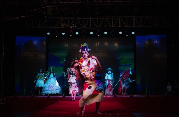 本次T台秀主题为“美丽中国,我是行动者”,设计艺术学院17级10个班级参赛。各班坚持“环保”的理念,自己动手利用身边旧报纸、旧横幅、塑料袋、旧光盘、过期药品、图钉、回形针、废旧布条等剪切、拼贴、串联而成精巧秀丽的特色服饰。从极具科幻效果的精灵造型,到个性十足的大鱼海棠,一件件废弃物品在环保的理念、时尚的巧思、青春的巧手下,重新焕发别样光彩,为观众带来了一场兼顾环保理念和时尚潮流的视觉盛宴。