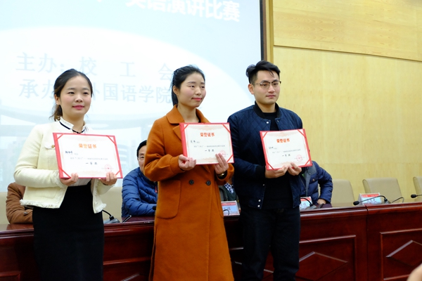 比赛分上半场和下半场,即非专业组和专业组(外国语学院分工会及国际教育学院分工会)。比赛中,26名选手根据抽签顺序,依次上台讲演。选手们风格各异,别具匠心。他们或从身边优秀人物和感人事迹出发,褒扬、赞颂了社会正能量;或结合自身教学实际,阐述对“厚德正行”的理解;或从社会现象入手,号召大家为建设社会主义新时代出力。赛场气氛热烈,高潮迭起。选手们巧妙思辨解题,滔滔不绝,声情并茂地陈述自己的见解,充分展示了深厚的英文功底和严谨的逻辑思辨能力。或慷慨激昂,或温情脉脉,或以理服人,或以情动人,大家以充分的准备以及可圈可点的表现,引发了在座观众连连掌声。经过激烈角逐,最终来自外国语学院的韩泽婷老师荣获专业组一等奖,经济学院的吴亦诚老师和机械工程学院的周丽老师获非专业组一等奖。其他12位老师分获二、三等奖。