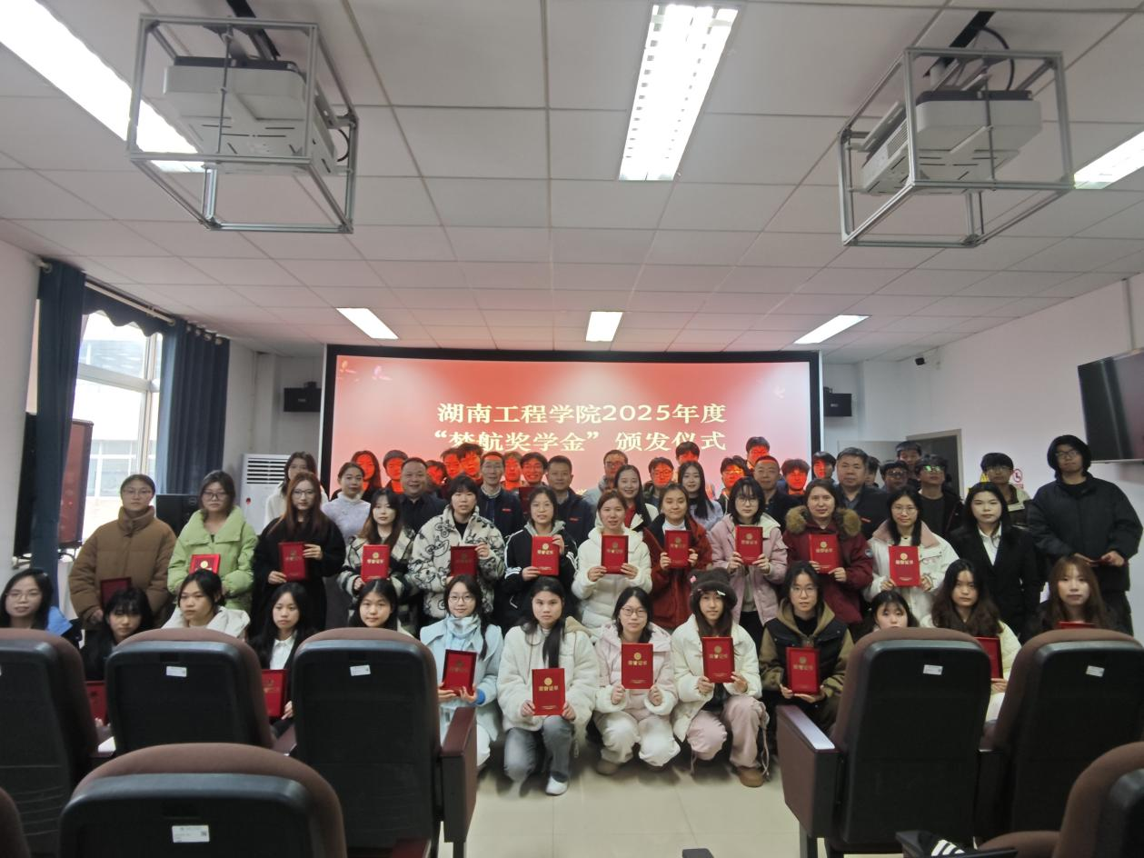 12月31日,我校2025年度“梦航奖学金”颁发仪式在主校区F栋510教室举行。长沙梦航二外科技有限公司董事长罗小青,总经理宋紫倩,我校校友联络中心主任张宏,商学院党委副书记谭超以及各学院相关负责人参加仪式。