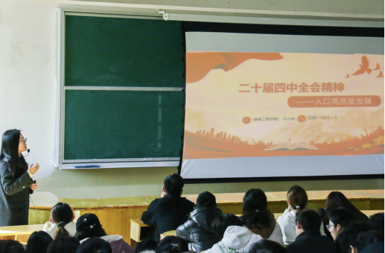 为深入学习贯彻党的二十届四中全会精神,落实立德树人根本任务,引导青年学子将个人成长融入中国式现代化建设大局,1月9日下午,湘潭市共青团“80、90、00后青年讲师团”成员、我校马克思主义学院教师冯小倍面向应用技术学院百余名师生,以“人口高质量发展”为主题带来了一场党的二十届四中全会精神专题宣讲。