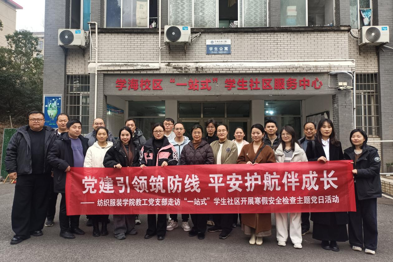 1月16日,纺织服装学院组织教工党员与班主任前往学海校区“一站式”学生社区服务中心,联合开展“党建引领筑防线 平安护航伴成长”主题党日活动,全面排查宿舍安全隐患,细致落实学生离校安排。