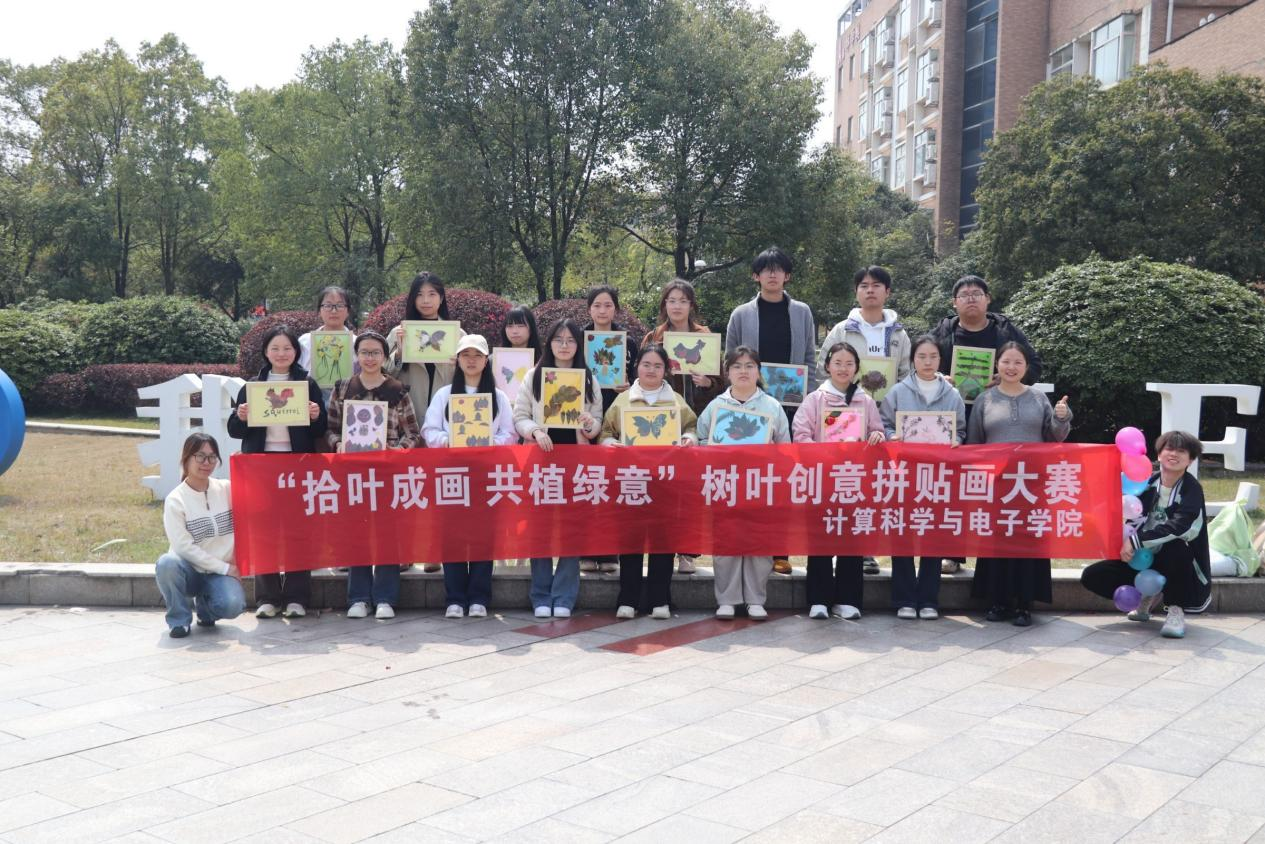 为迎接第48个植树节,弘扬生态文明理念,丰富校园文化生活,3月12日中午,计算科学与电子学院在主校区知行广场开展“拾叶成画 共植绿意”树叶创意拼贴画大赛,学院大一大二共16名学生参与活动。