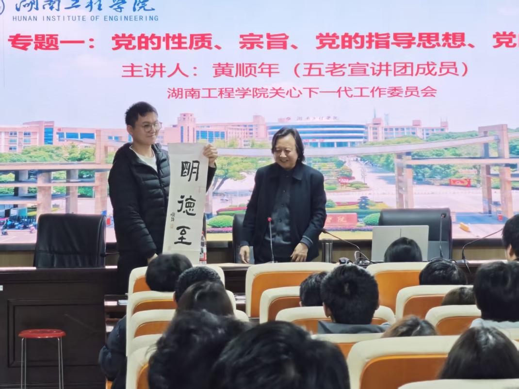 3月28日,五老宣讲团成员、退休副教授黄顺年重返讲台,以“党的性质与宗旨”为主题,为材料与化工学院和医学工程技术学院第40期入党积极分子带来一堂兼具哲学深度与人生温度的精彩党课。黄顺年用他四十年如一日的讲坛坚守与人生体悟,生动诠释了一名马克思主义信仰者的赤诚情怀。