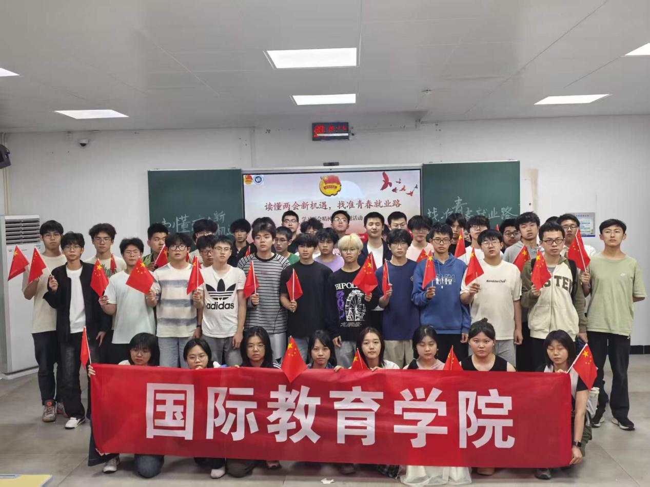 活动在庄严的国歌声中拉开序幕,全体师生起立共唱国歌。随后,学生陈哲希、郭孝慈领学“读懂两会政策,找准就业方向——从两会精神看青年发展方向”相关文件,引导同学们深刻理解国家发展大局与青年成长路径。随后,全体学生共同观看两会专题视频,深入了解当前就业形势,并围绕就业政策、创新创业等议题展开热烈讨论。