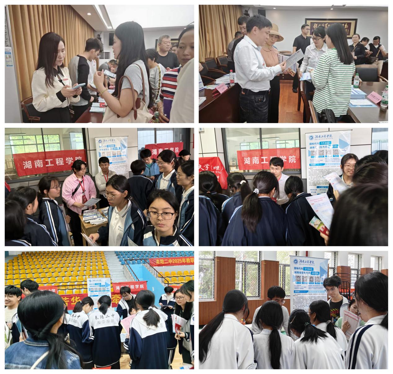 4月19日至21日,我校招生就业处牵头,联合智能科学与工程学院、外国语学院,组建本科招生宣传团队,先后走进株洲市南方中学、炎陵一中,衡阳市衡东一中、耒阳一中、耒阳二中,开展系列招生宣传活动,为中学师生和家长送去精准的升学指导与院校资讯。