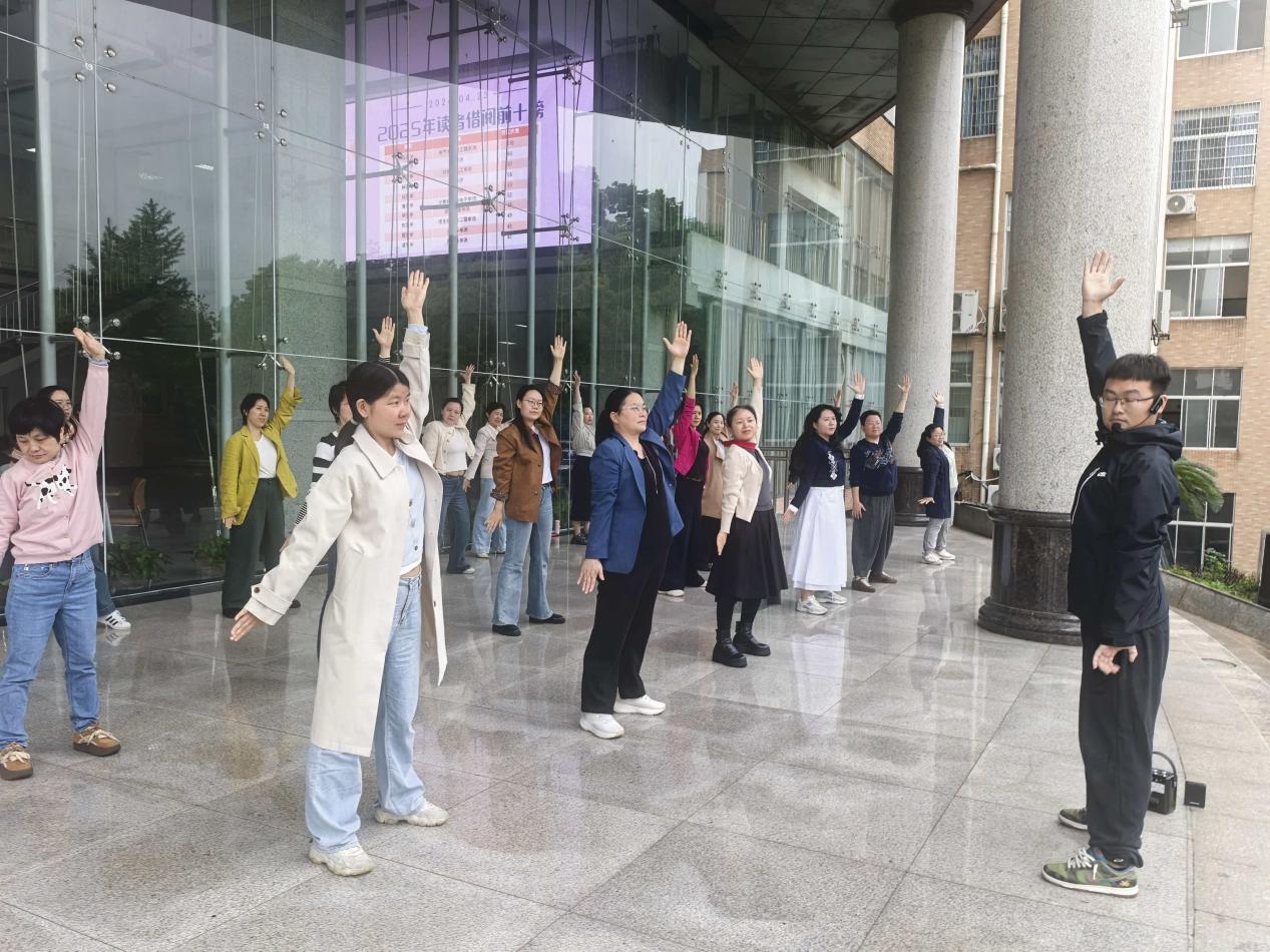为深入推进“我为群众办实事”实践活动,关心关爱教职工身心健康,4月28日下午,马克思主义学院分工会在学校图书馆门口组织开展了八段锦集体学练活动。活动特邀体育科学与工程学院教师王斌彬现场教学,吸引了学院50多名教职工踊跃参与。